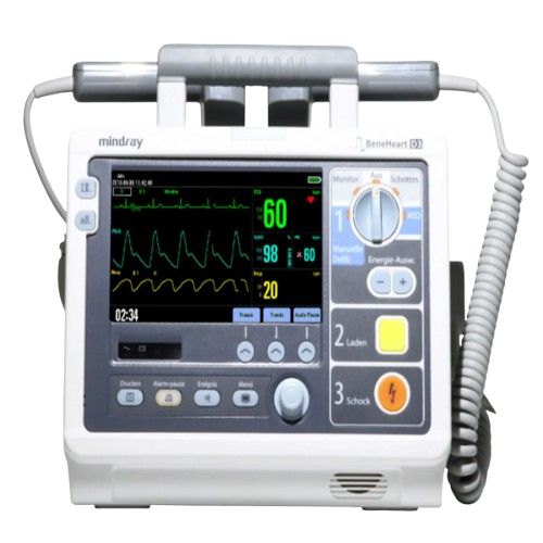 The Mindray BeneHeart D3 is a compact, lightweight, and highly versatile professional defibrillator/monitor designed for rapid, reliable response in critical cardiac emergencies. Featuring a powerful 4-in-1 integrated design — manual defibrillation, AED mode, external pacing, and multi-parameter monitoring — the BeneHeart D3 empowers clinicians in hospitals, emergency departments, ambulances, clinics, and transport settings to handle ventricular fibrillation, cardiac arrest, and other arrhythmias with confidence and speed.
